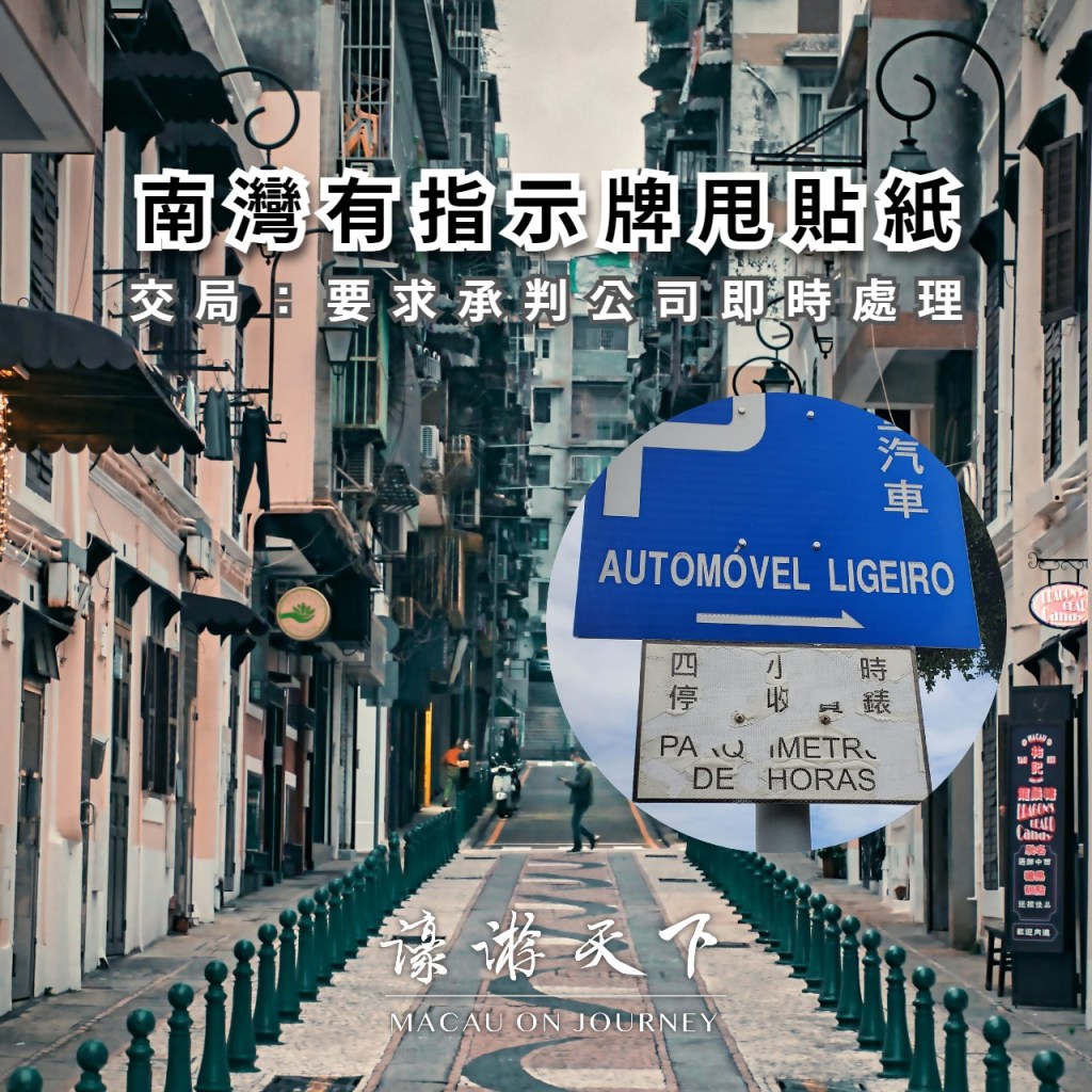 早前本澳有路牌字樣出現脫落的情況,引起社會廣泛關注。昨日再有網民反映南灣有指示牌出現貼紙脫落的情況。交通事務局回應指是舊指示牌,已隨即指示承判公司跟進。