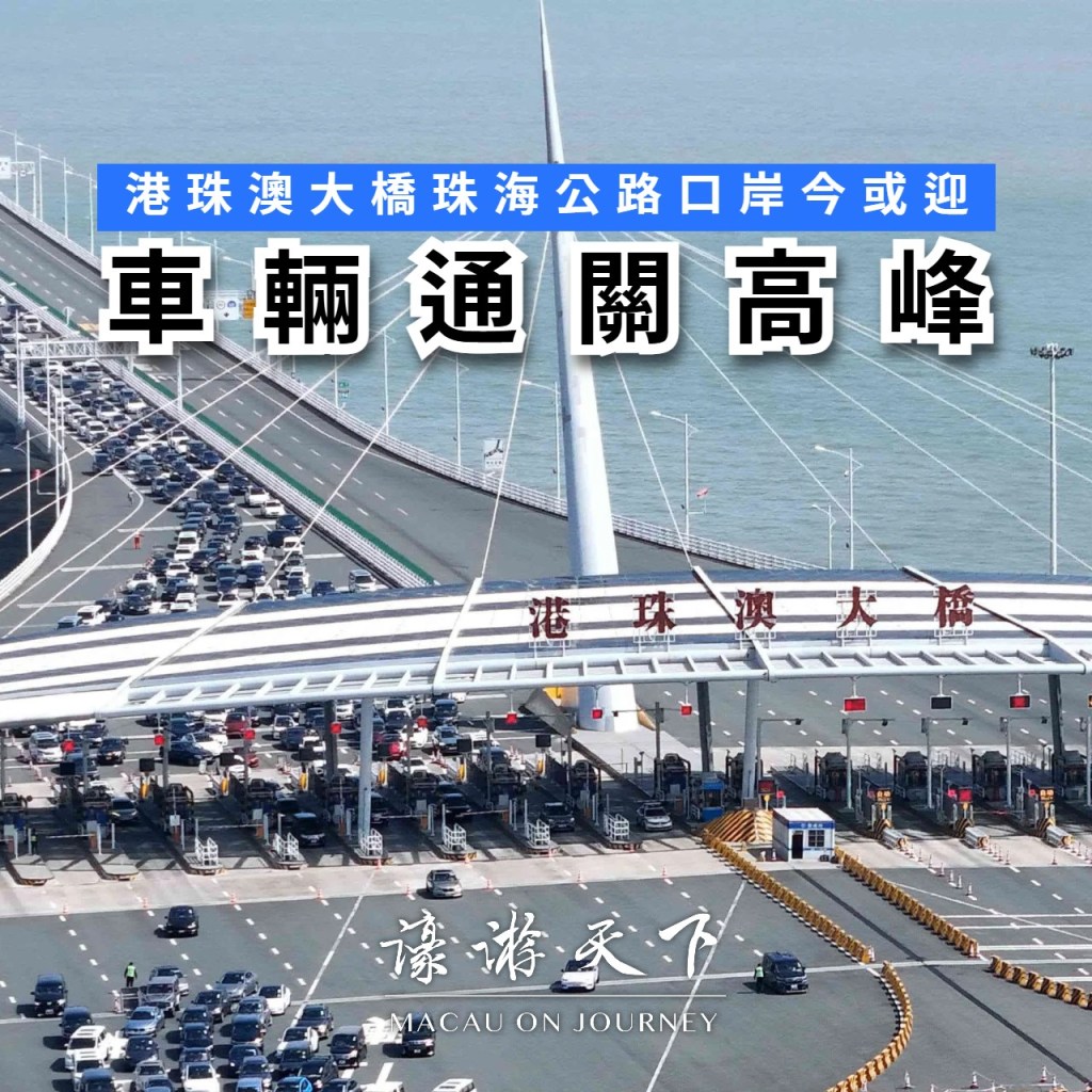 新春期間港珠澳大橋將免收七座及以下小型客車通行費,另外當局預計車輛及旅客出入境高峰分別是年初二至年初五以及年初二至年初六。