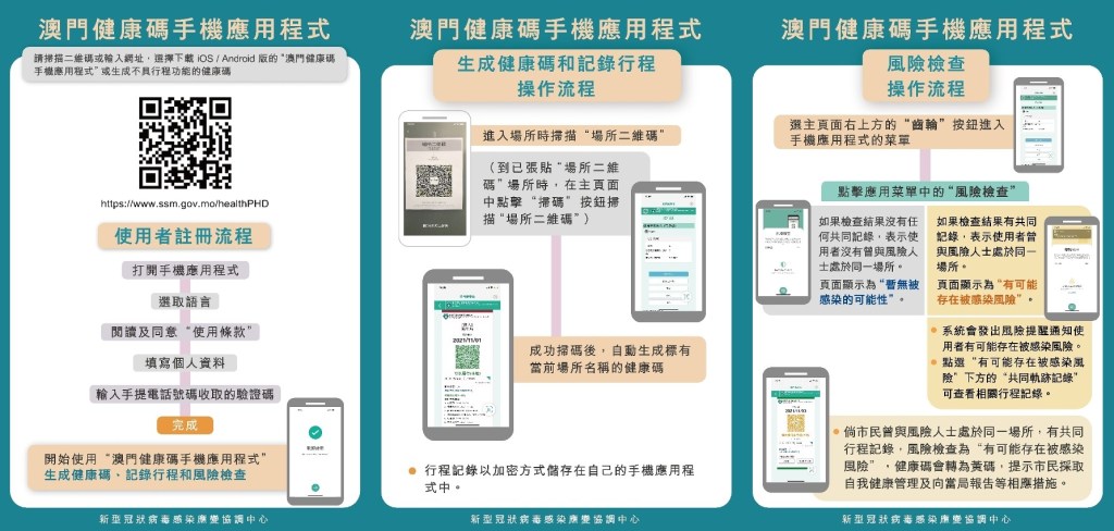 澳門政府推出「澳門健康碼」手機應用程式,並新增行程記錄及風險提示兩項功能,即日起供市民下載。首階段會在衛生局轄下醫療場所和部門,以及於澳門格蘭披治大賽車及澳門美食節兩項大型活動試行。