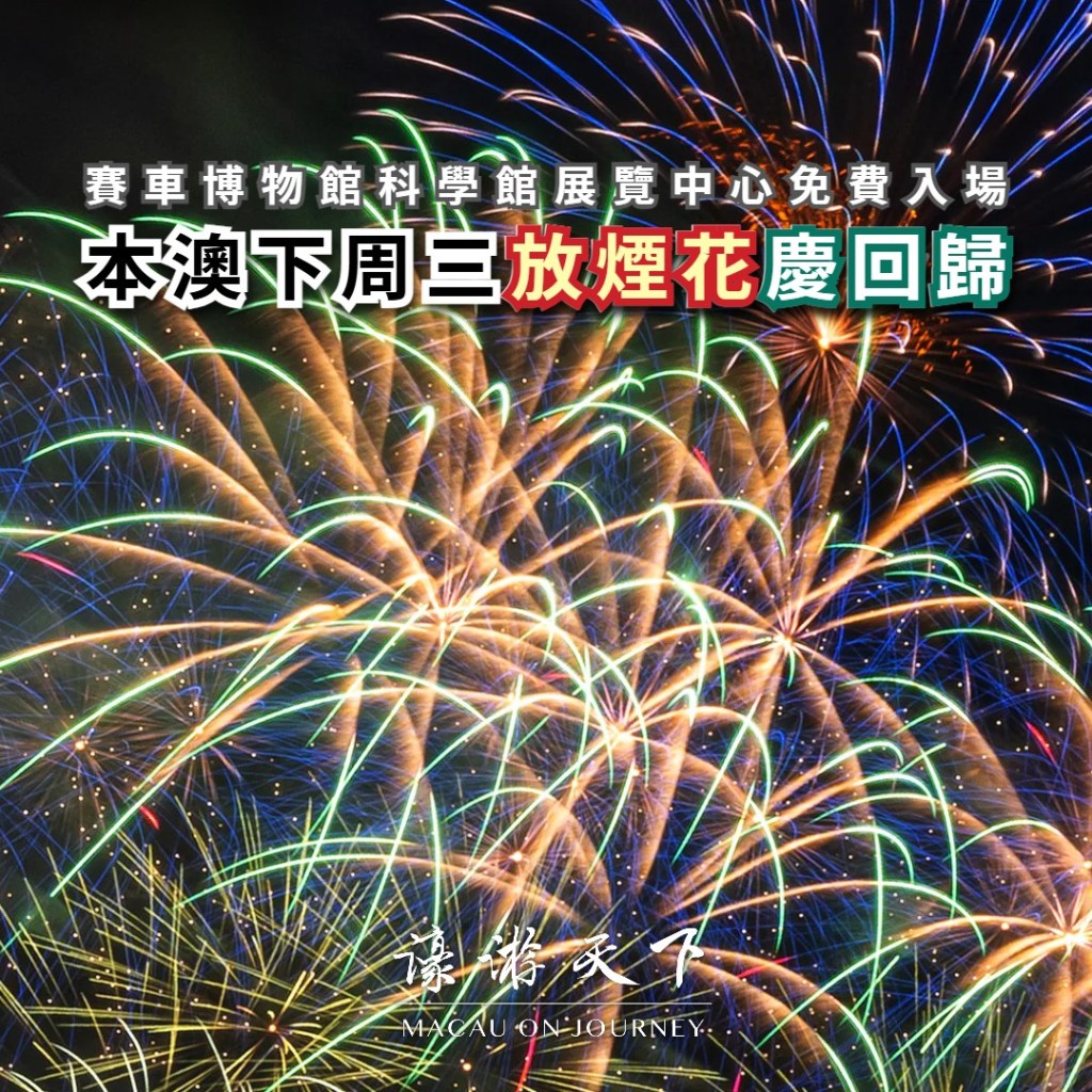 為慶祝澳門回歸二十五周年,本澳多處都有慶祝活動,其中旅遊局將於下星期三(12月25日)舉行煙花表演。大賽車博物館和科學館展覽中心於回歸紀念日亦免費開放。