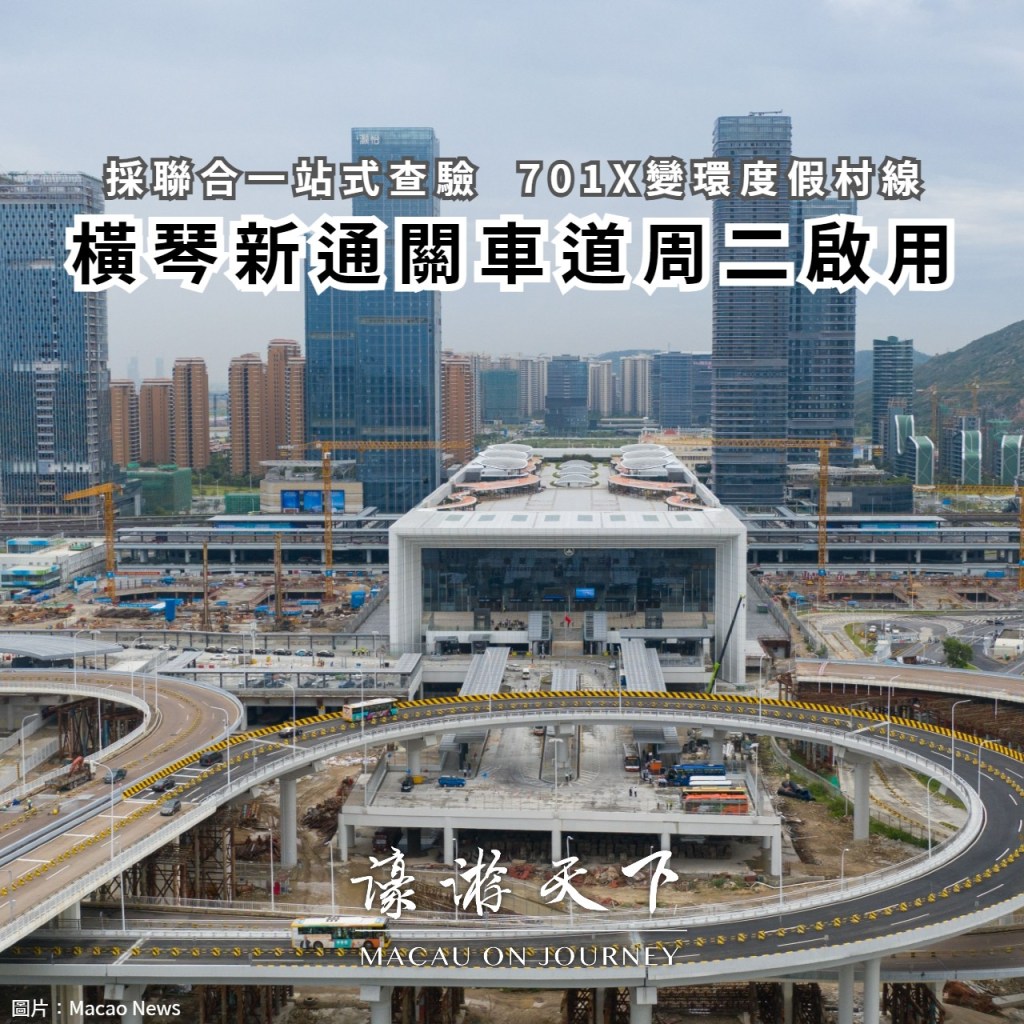 珠海, 交通, 澳門 採聯合一站式查驗 701X變環度假村線 橫琴新通關車道周二啟用 2023-09-22 濠遊天下 macauonjourney 發佈留言 橫琴口岸二期新客貨車通道將於星期二下午三時開通,前往橫琴口岸的交通方式將會有新安排,其中701X號巴士將會經過路氹多家綜合度假村。同時,蓮花大橋全線恢復通車,澳門大學連接橫琴口岸通道橋車道同步開通啟用。 繼續閱讀 採聯合一站式查驗 701X變環度假村線 橫琴新通關車道周二啟用 →