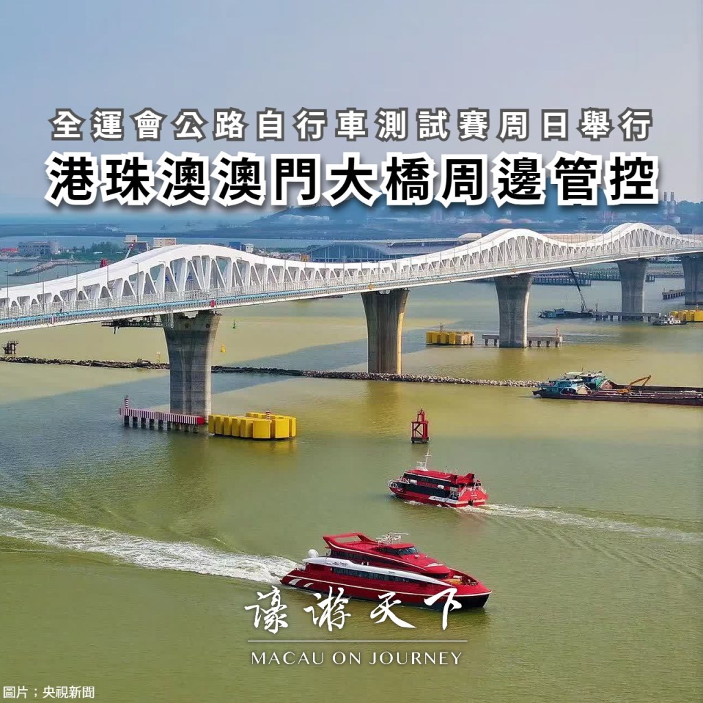 2024粵港澳公路自行車賽暨第十五屆全國運動會公路自行車測試賽於星期日舉行。屆時澳門大橋會實施封閉交通,另外港珠澳大橋澳門口岸及氹仔碼頭一帶亦會實施臨時交通措施。