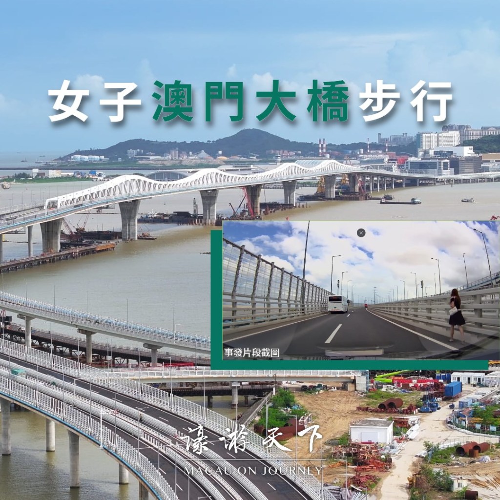 去年十月通車的澳門大橋日前有女子擅自闖入,並在橋上步行。
