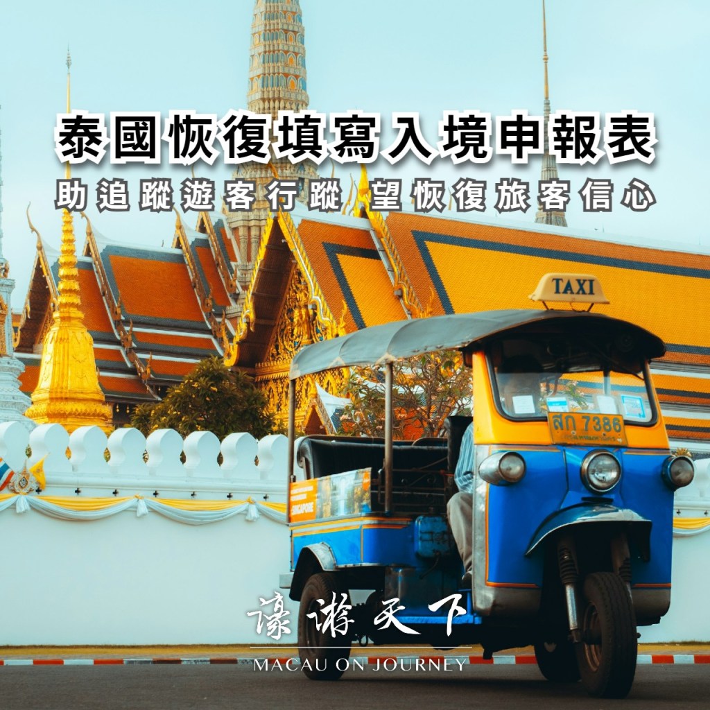 出入境, 安全, 泰國 泰國恢復填寫入境申報表 助追蹤遊客行蹤 望恢復旅客信心 2025-01-27 濠遊天下 macauonjourney 發佈留言 為了更好追蹤外國旅客在泰國的行蹤,泰國政府計劃恢復旅客填寫TM6入境卡的規定,但將改為網上填寫。而電子旅行證(ETA)將有可能延期實施。 繼續閱讀 泰國恢復填寫入境申報表 助追蹤遊客行蹤 望恢復旅客信心 →