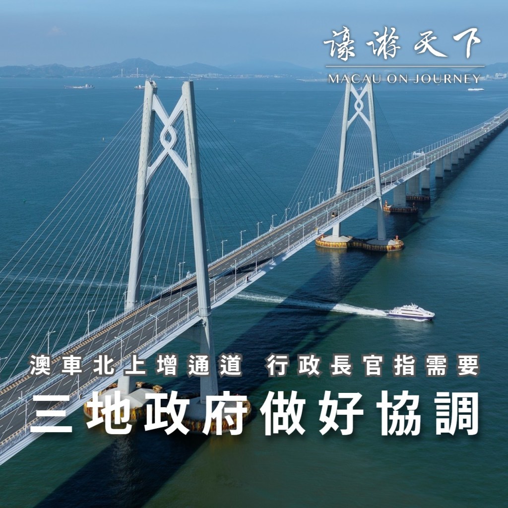 行政長官岑浩輝昨日受訪時被問到「澳車北上」的出入境通道會否增加?他表示需要三地政府做好協調。至於「粵車南下」,政府會密切關注香港的實施情況,再結合澳門交通情況研究。