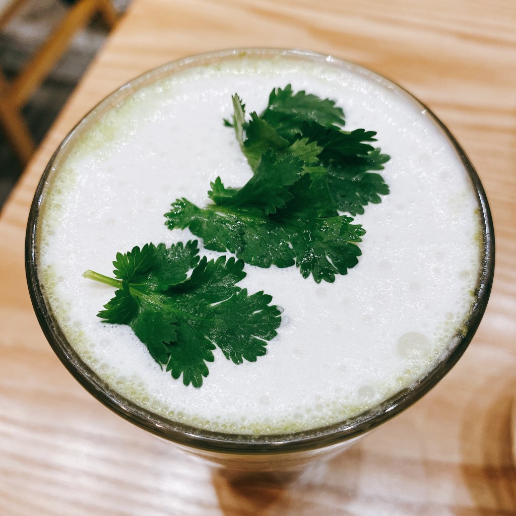 至於飲品方面,奶蓋特濃芫荽汁,杯中係芫荽汁,上面係香草杏仁奶,最上面以芫荽葉裝飾,似係各位荽友嘅終極測試!不過實際飲落去,清新得嚟又唔怕有一陣臭青味,相信係一般人都接受得到。而杏仁奶甜得嚟亦相當濃郁,更係朋友至愛呀!