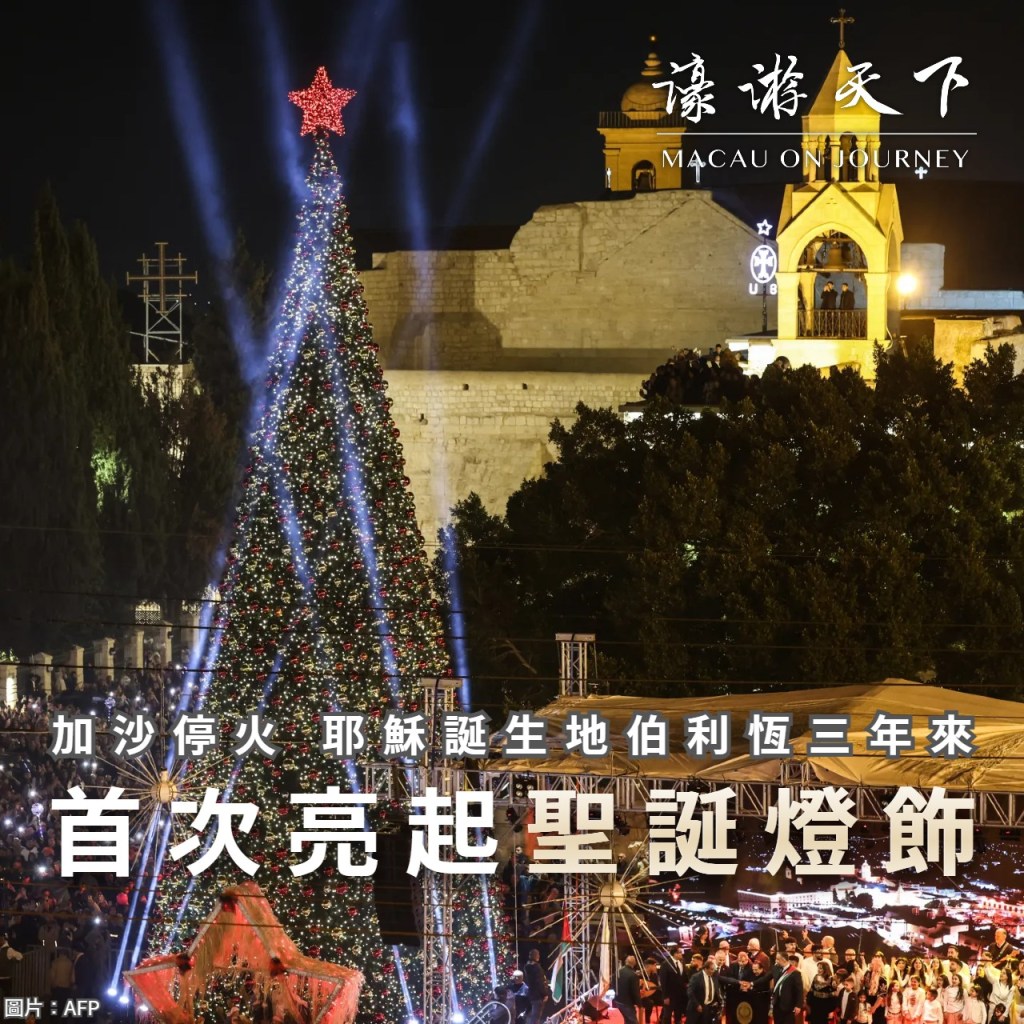 在被以色列佔領的巴勒斯坦城鎮、相傳是耶穌降生地的伯利恆(白冷),星期六舉行了聖誕樹亮燈儀式,是加沙戰事爆發三年來的第一次。