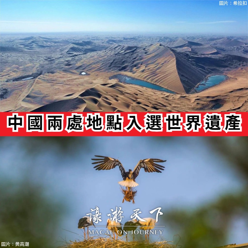 中國的巴丹吉林沙漠—沙山湖泊群、中國黃(渤)海候鳥棲息地(第二期)成功列入《世界遺產名錄》。