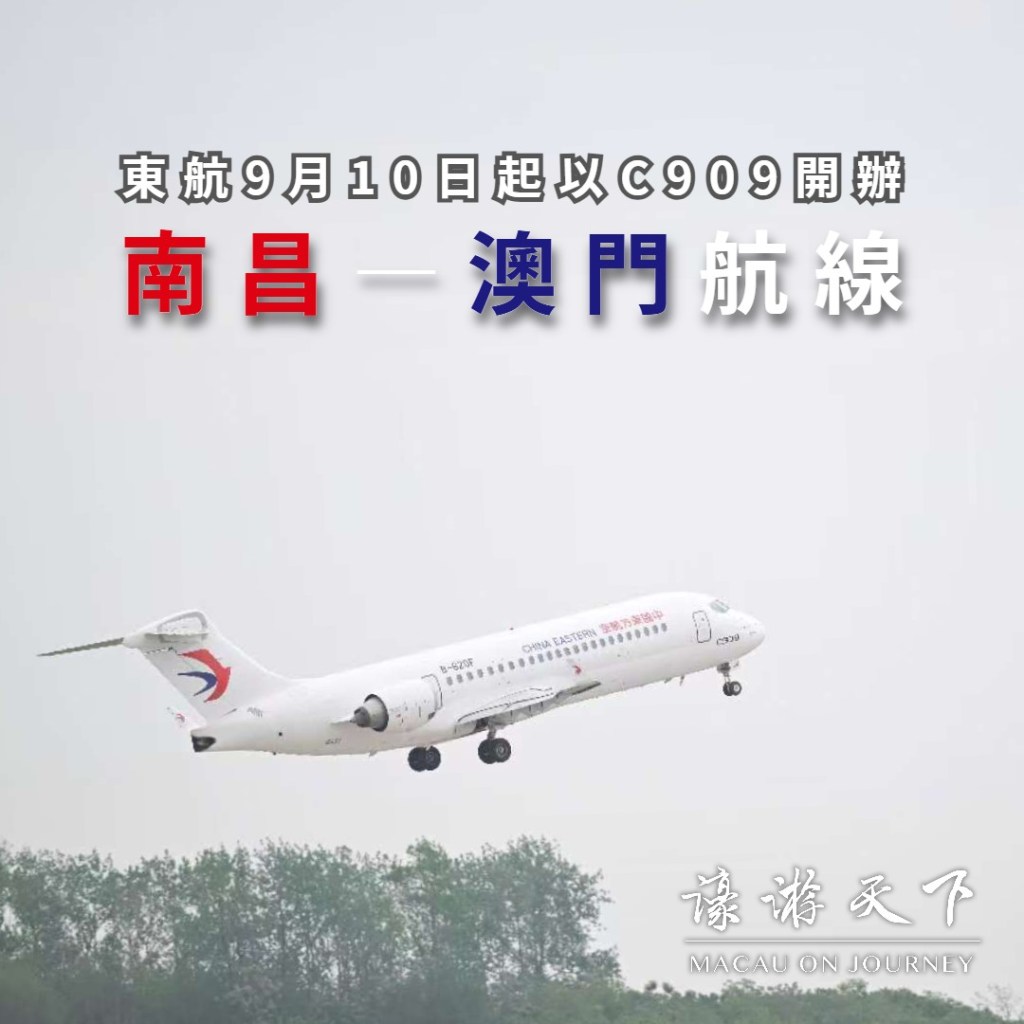 澳門機場向澳門電台證實,中國東方航空將於9月10日起開辦南昌—澳門航線,每周三班。