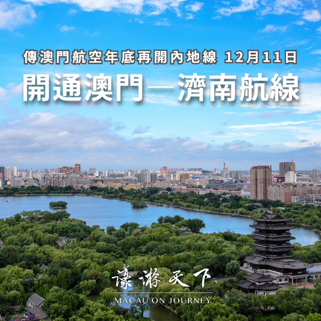 繼黑龍江哈爾濱後,有傳澳門航空將於本年底再開辦多一條內地航線,預計12月11日將開通澳門—濟南航線。