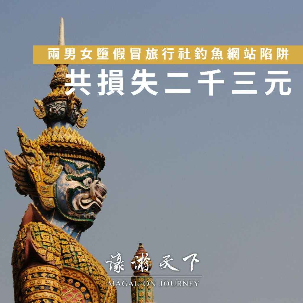 司法警察局公佈,兩名男女分別墮入假冒旅行社釣魚網站陷阱,合共損失約二千三百澳門元。