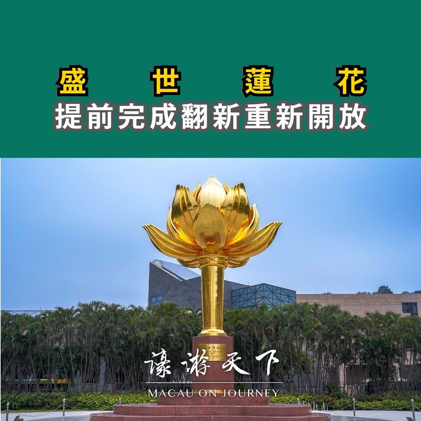 慶祝澳門回歸祖國、由中央人民政府致送給澳門特區的賀禮《盛世蓮花》雕塑翻新工程提前完成,昨日起重新對公眾開放。