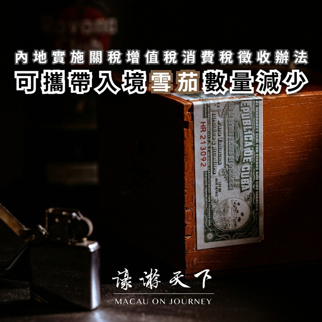 香港, 海關, 中國內地, 澳門 內地實施關稅增值稅消費稅徵收辦法 可攜帶入境雪茄數量減少 2024-12-01 濠遊天下 macauonjourney 發佈留言 國務院關稅稅則委員會前日公佈《進境物品關稅、增值稅、消費稅徵收辦法》,今日起生效。當中從澳門和香港免稅攜帶雪茄入境內地的數量減少至十支。 繼續閱讀 內地實施關稅增值稅消費稅徵收辦法 可攜帶入境雪茄數量減少 →