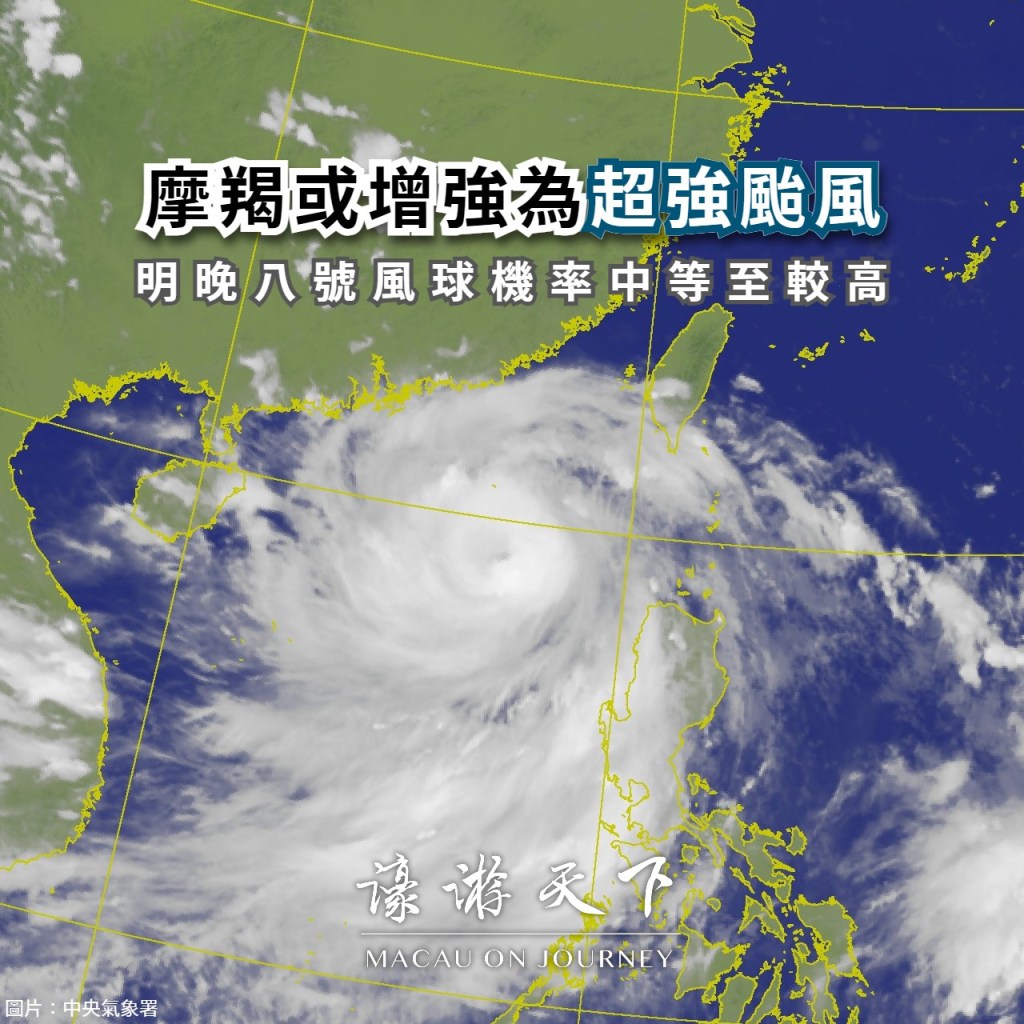 颱風摩羯已經在晚上十一時增強為超強颱風。氣象局在早上五時發出三號風球,預料三號風球將在日間維持。晚間發出八號風球的機會較高。