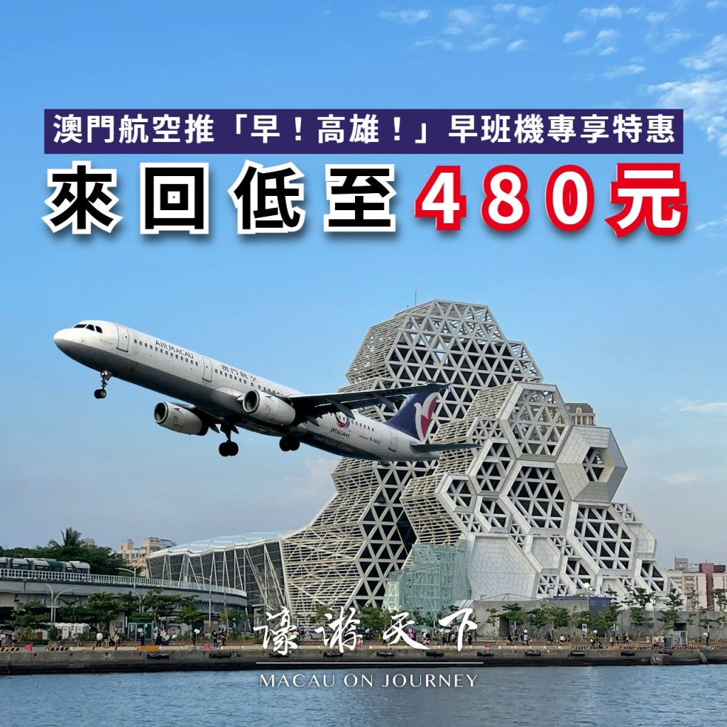 澳門航空為慶祝高雄線新增早班機,即日起再度推出限時優惠,乘坐該航班出發來回低至480元。