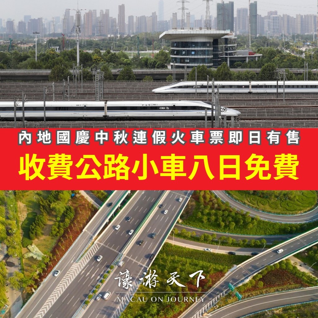 內地今年國慶及中秋假期相連,長達八日。國內連假火車票已於昨日起發售,另外收費公路連假期間將免收小型客車通行費。